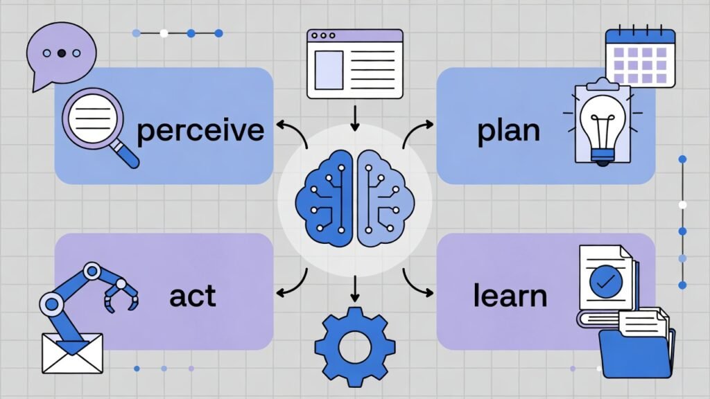 - Perceive: The agent receives a goal or “prompt” from you (e.g., “Find the top 5 competitors for my coffee shop in Austin and summarize their pricing”).
